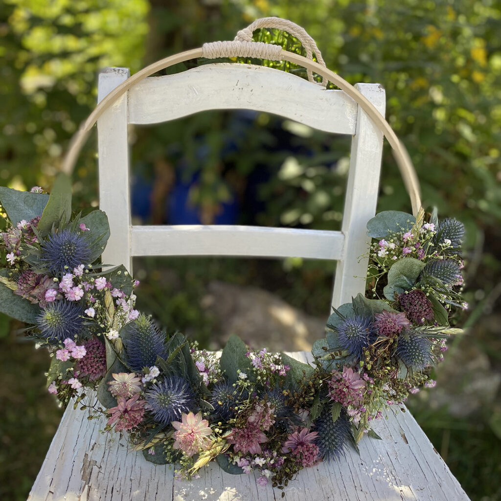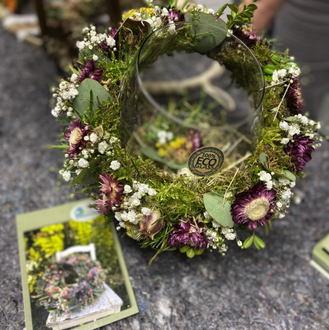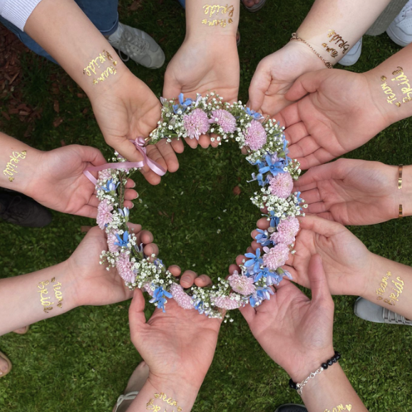 Ein unvergesslicher Junggesellinnenabschied in Würzburg: Blumenkränze binden im “Blauen Haus”.